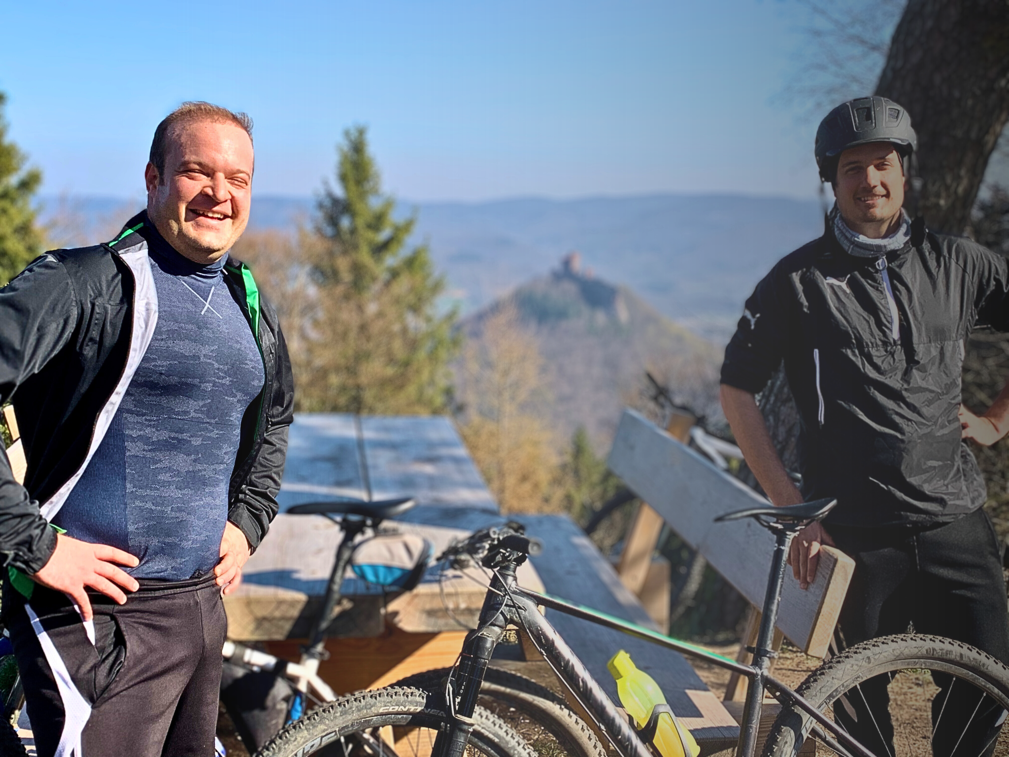 Um den Kopf frei zu bekommen, fahre ich gerne Fahrrad, vor allem Mountainbike. Für einen guten Start in den Tag gehe ich morgens ins Fitnessstudio. Liebend gerne probiere ich neue Sportarten aus wie Rudern, Bouldern, Canyoning und Kite-Surfen. Bis zu meinem 24. Lebensjahr spielte ich täglich Fußball. (Foto: Mountainbiken im Pfälzer Wald)